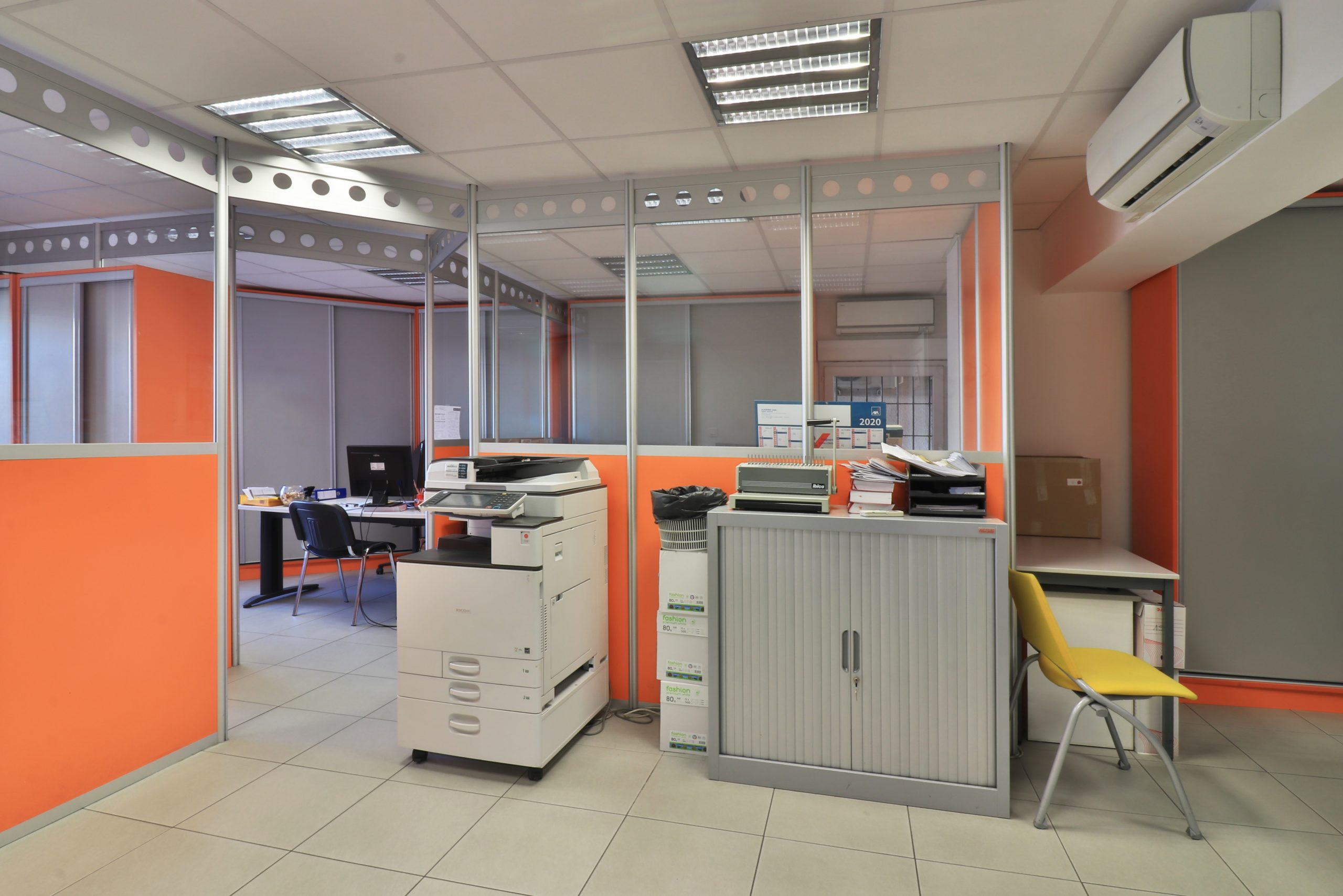 Bureaux de 120m² en rez-de-chaussée composée d’une entrée, deux grande pièce de travail pour accueillir plusieurs collaborateurs ou salles de réunion, deux bureaux individuels, toilette PMR, cuisine.